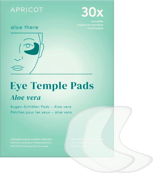 The Aloe Vera Eye Temple Pads by APRICOT are especially suitable for dry and sensitive skin around the eyes. High-quality organic aloe vera intensively nourishes the skin and provides essential moisture. The pads are made of medical-grade silicone and can be reused up to 30 times.