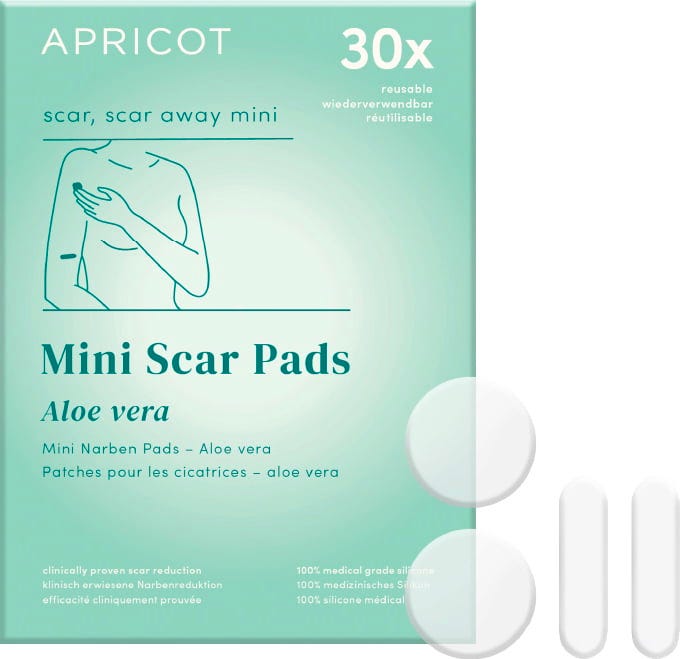 The Aloe Vera Scar Pads by APRICOT are suitable for use on old and new scars. Thanks to aloe vera, the scar is intensively nourished. The pads are made of medical-grade silicone and can be reused up to 30 times. They can also be used on sensitive skin or as after-sun care.