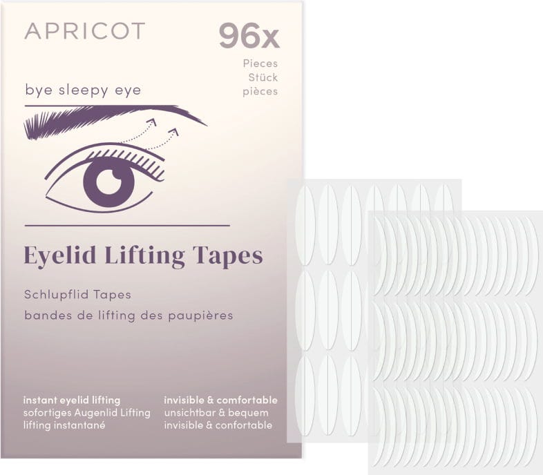With APRICOT's Eyelid Lifting Tapes, you can visually lift your eyelids, making them perfect for addressing drooping eyelids. The tapes are clear and discreet, and they can easily be concealed with make-up, allowing them to blend in perfectly with the skin - for a radiant, awake look in no time. The pack contains lifting tapes in 2 different sizes.