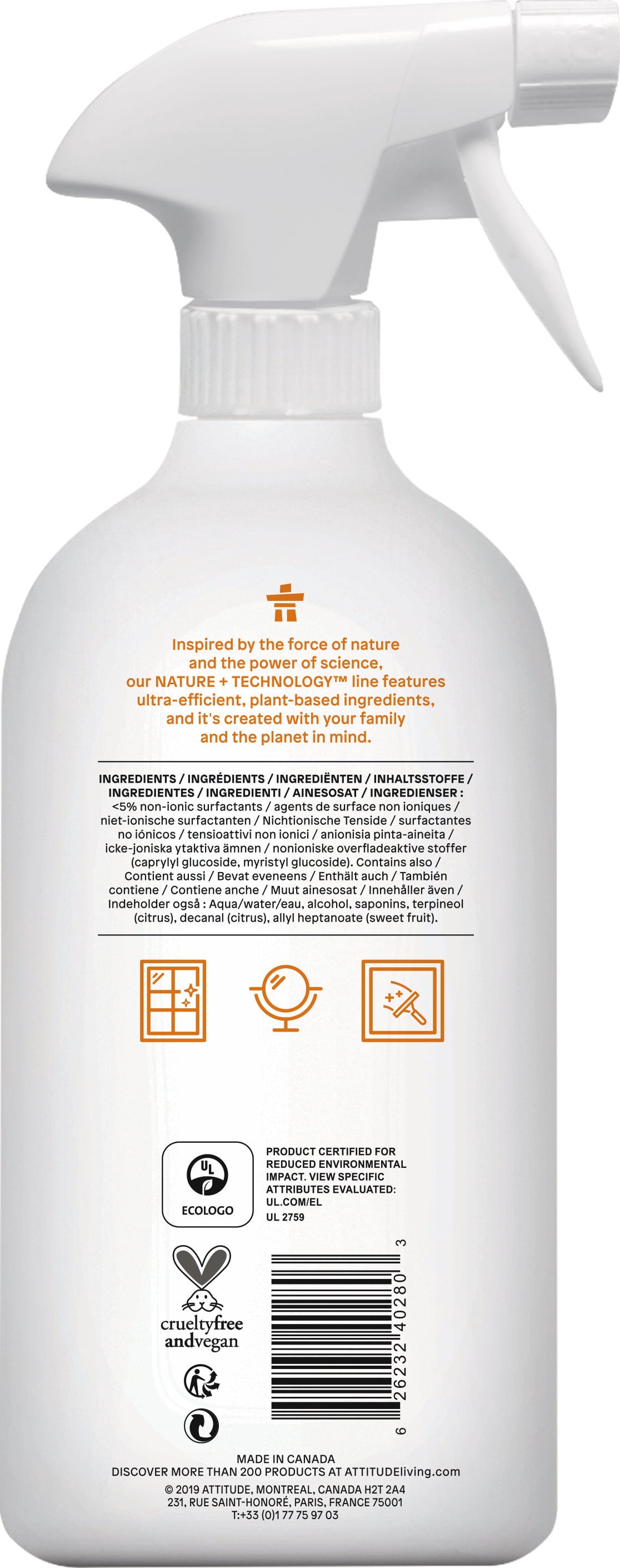 ATTITUDE Glass & Mirror Cleaner, 800 ml