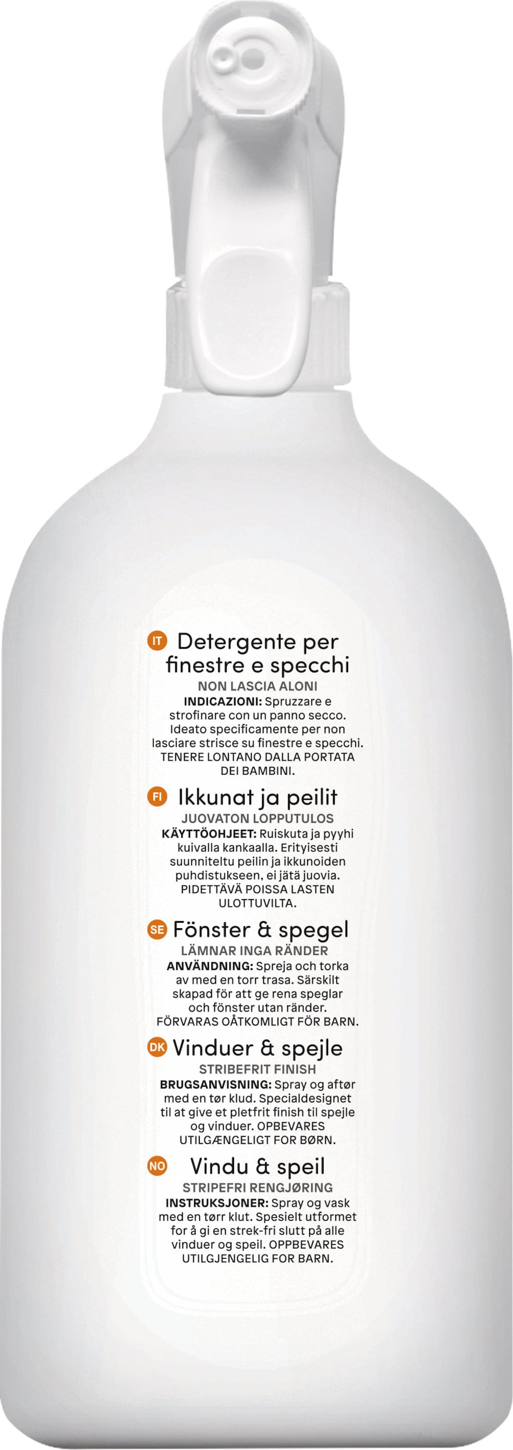Spray and rub with a dry cloth. Specially designed for streak-free mirrors and windows.