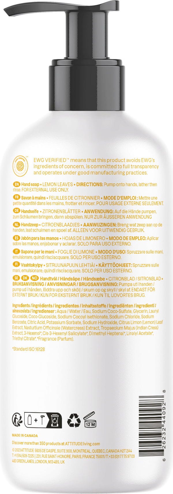 ATTITUDE Super Leaves Lemon Hand Soap, 473 ml