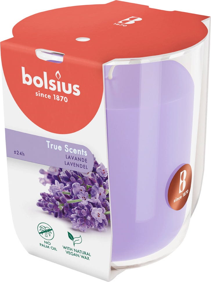 The bolsius True ScentsSscented Candle in a jar ensures optimum fragrance diffusion in your living space for up to 25 hours. Thanks to Freshplex™ technology, it even helps to neutralise tobacco smoke. The candle is made partly of vegetable wax and is free from palm oil.