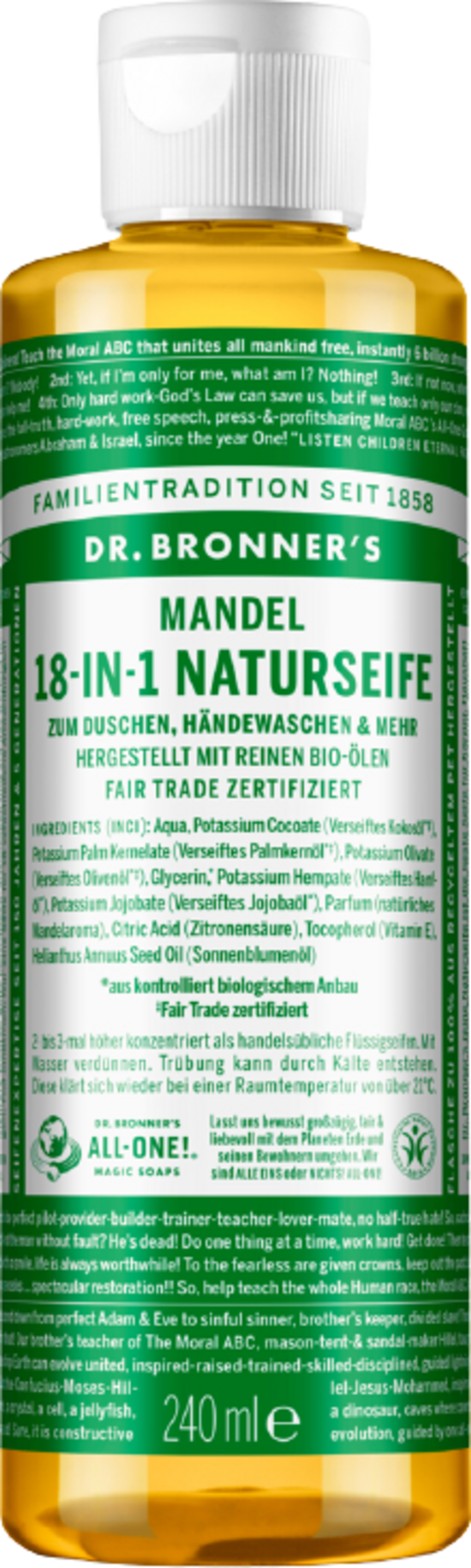 English reviews written for Dr. Bronner's 18in1 Natural Almond Soap