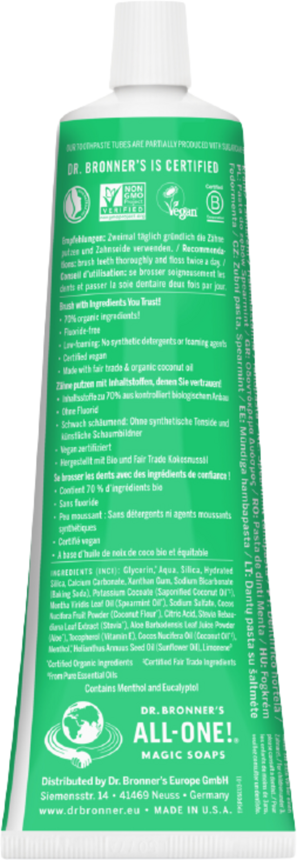 English reviews written for Dr. Bronner's Spearmint Toothpaste