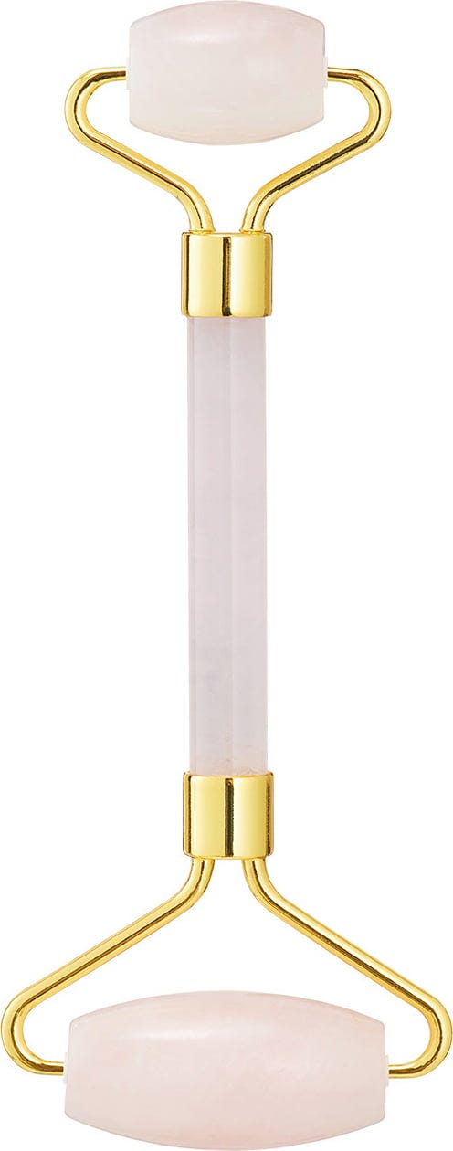 Effective skincare tool with an enchanting design. The rose quartz facial roller, also known as the "stone of love", boosts skin radiance and gives it a firm and youthful appearance. Particularly dull and tired-looking skin gets a fresh and rosy complexion with regular use. The tool is designed with 2 rollers in different sizes equipped to treat both smaller and larger areas of the face. Enjoy a calm and balanced sensation whilst using the facial roller. The roller is packaged in a pretty storage bag for easy travelling.