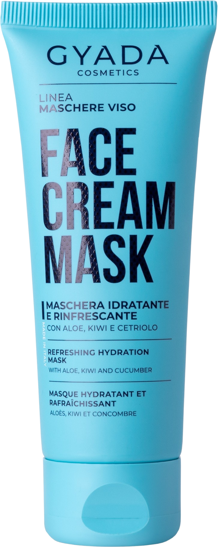 The Moisturising and Regenerating Face Mask by GYADA Cosmetics targets the needs of dry and dull skin types: a mix of aloe vera, kiwi and cucumber delivers essential vitamins and mineral salts that are abundant in antioxidants and boast skin-repairing effects. Hyaluronic acid, in a high molecular weight, hydrates the skin and forms a protective film on the surface of the skin. Allantoin, mallow, jojoba oil and coconut oil soften and protect the skin wonderfully.