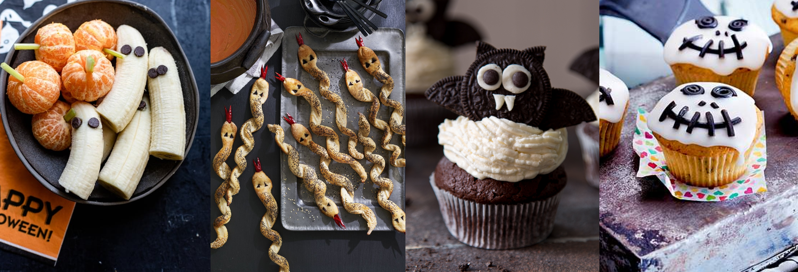 • Halloween snacks: You can create devilishly delicious snacks for your party with little effort. Bananas and tangerines quickly turn into little pumpkins and ghosts. You can easily form puff pastry sticks into slithering snakes and muffins into bats with Oreo biscuits.
