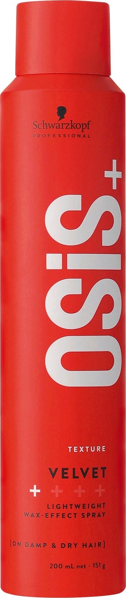 The Schwarzkopf Professional OSiS+ Velvet spray has a wax effect and ensures a weightless feel with natural definition. Thanks to its ultra-fine spray distribution, is able to give even fine hair a velvety, light feel and natural shine.